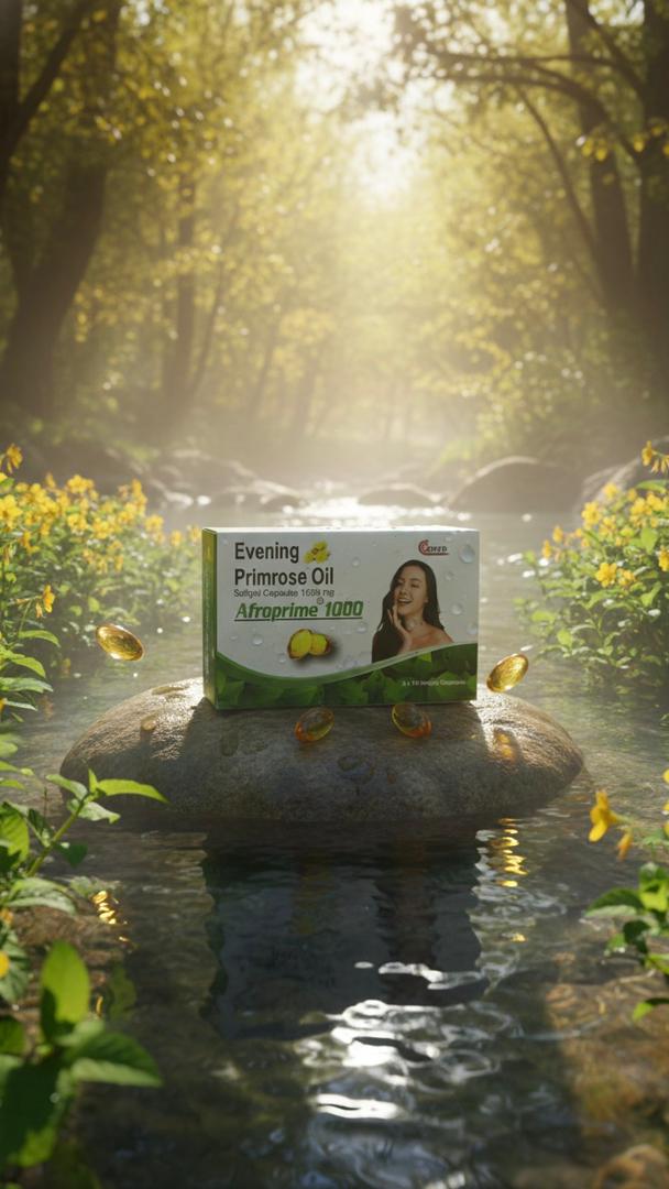Nurture your body naturally with Afroprime 1000 Evening Primrose Oil. Each high-potency softgel contains 1000mg of pure Evening Primrose Oil, a rich natural source of Gamma-Linolenic Acid (GLA). This essential fatty acid is widely celebrated for its ability to support hormonal balance, helping to manage symptoms associated with the menstrual cycle and menopause.